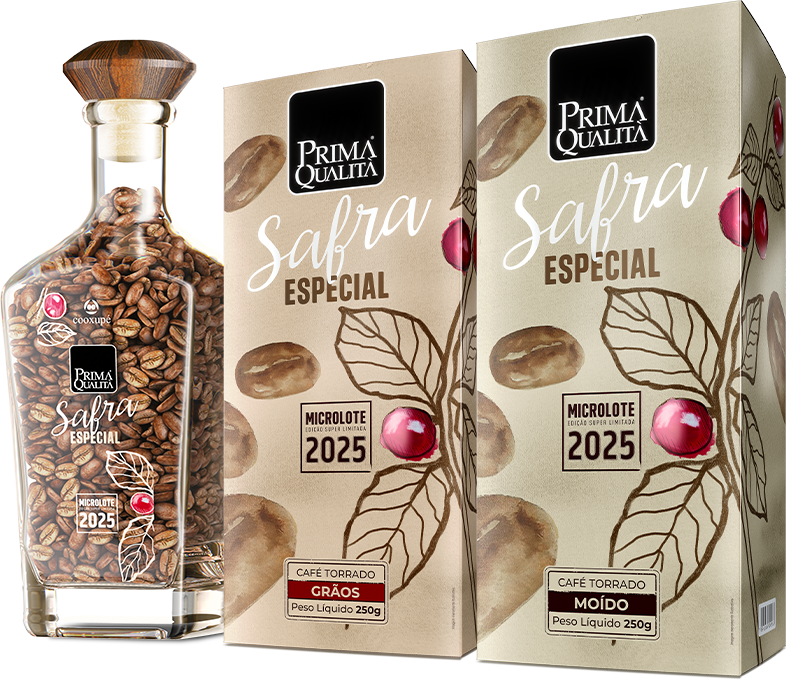 O Café Prima Qualità Safra Especial 2024 é um microlote de edição limitada, selecionado entre os melhores lotes do Programa Especialíssimo. Com pontuação 87+, apresenta aroma frutado, corpo licoroso e notas marcantes de cereja e chocolate. Produzido de forma sustentável, reflete a excelência da cafeicultura do Sul de Minas e Cerrado Mineiro. Uma experiência única para os verdadeiros apreciadores de cafés especiais.